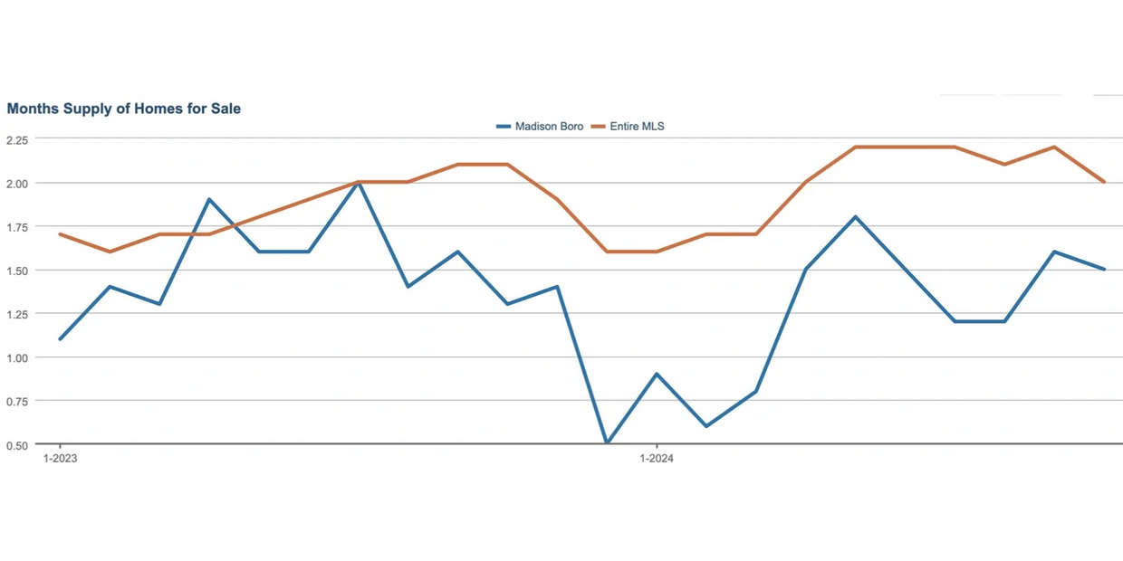 For context, this data is compared to the entire MLS (Multiple Listing Service), which covers northern and central New Jersey, showing that Madison is outperforming the broader market in terms of speed and demand.